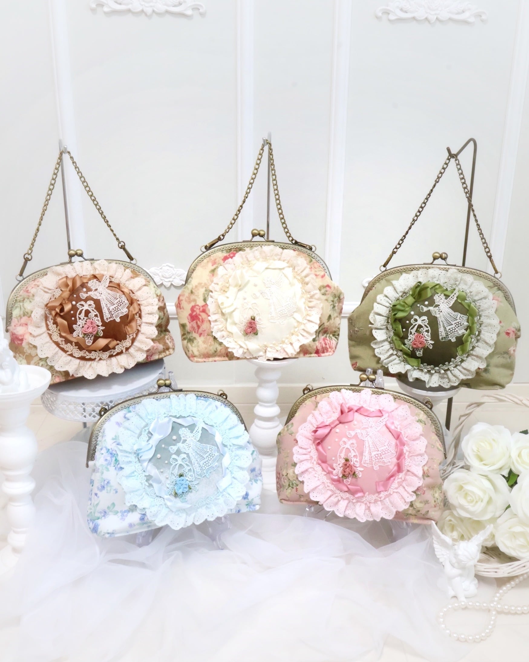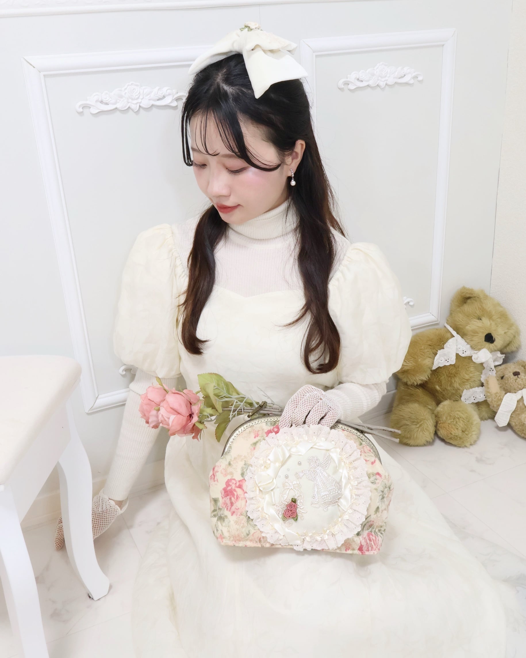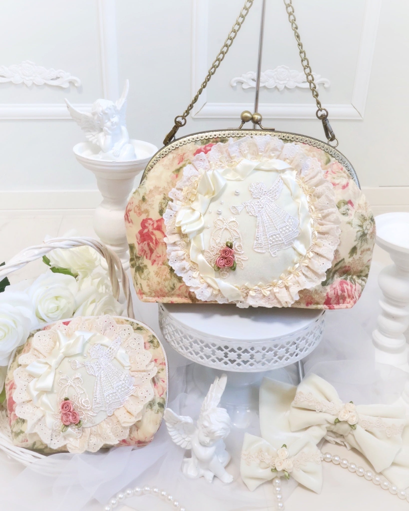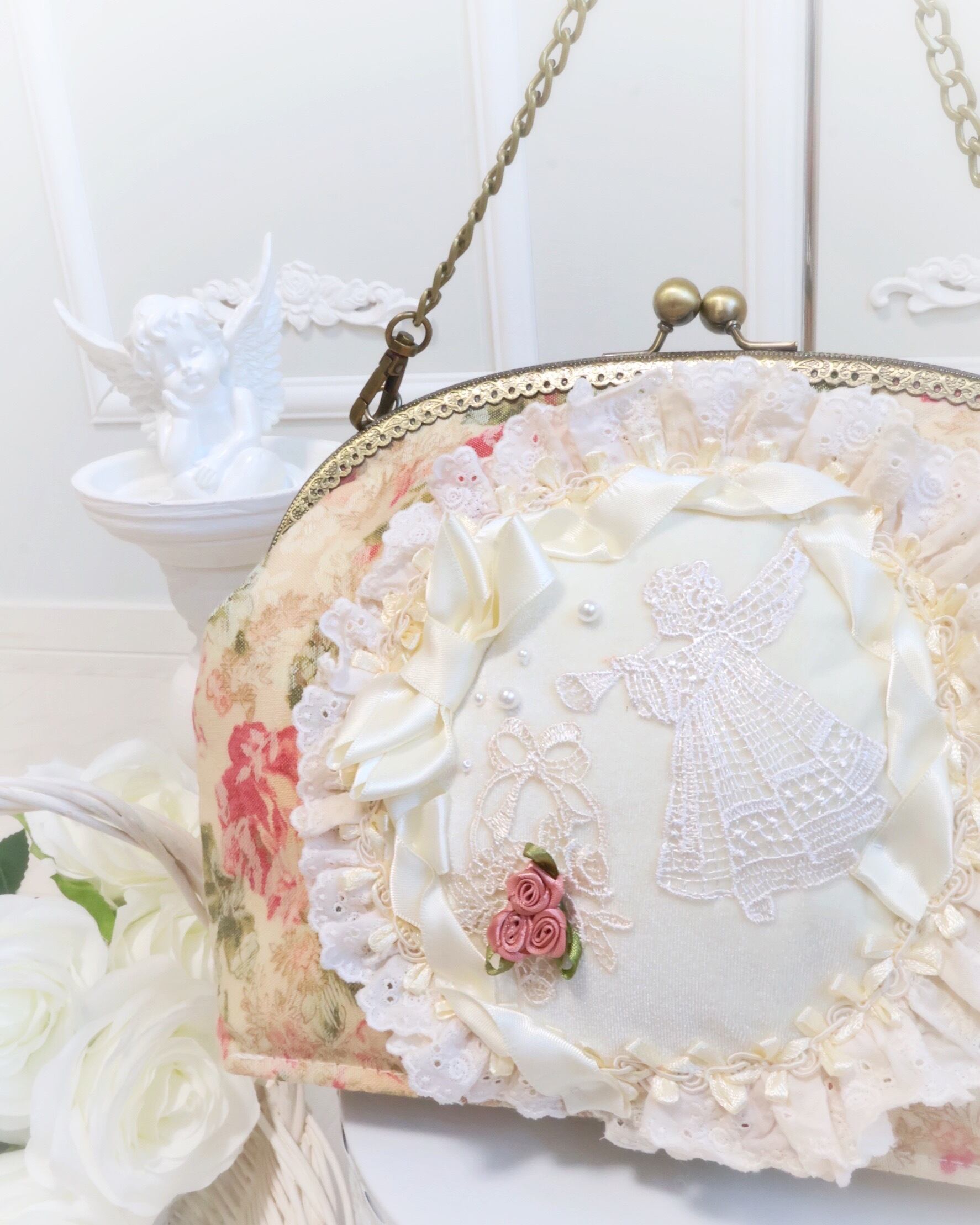 繊細なエンジェルレースが目を惹くがま口バッグ。