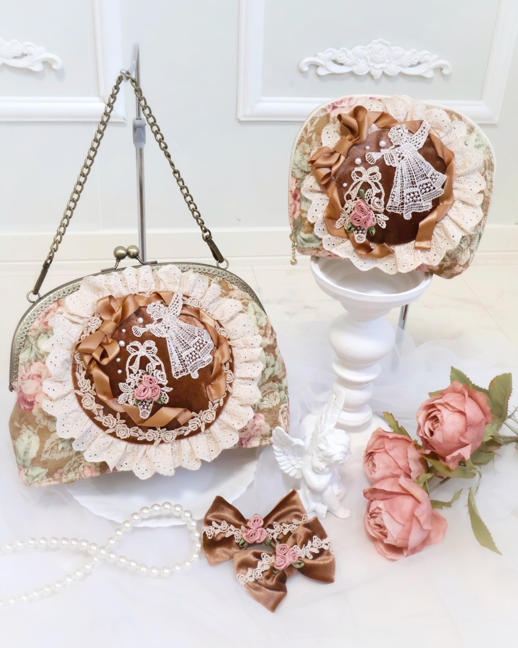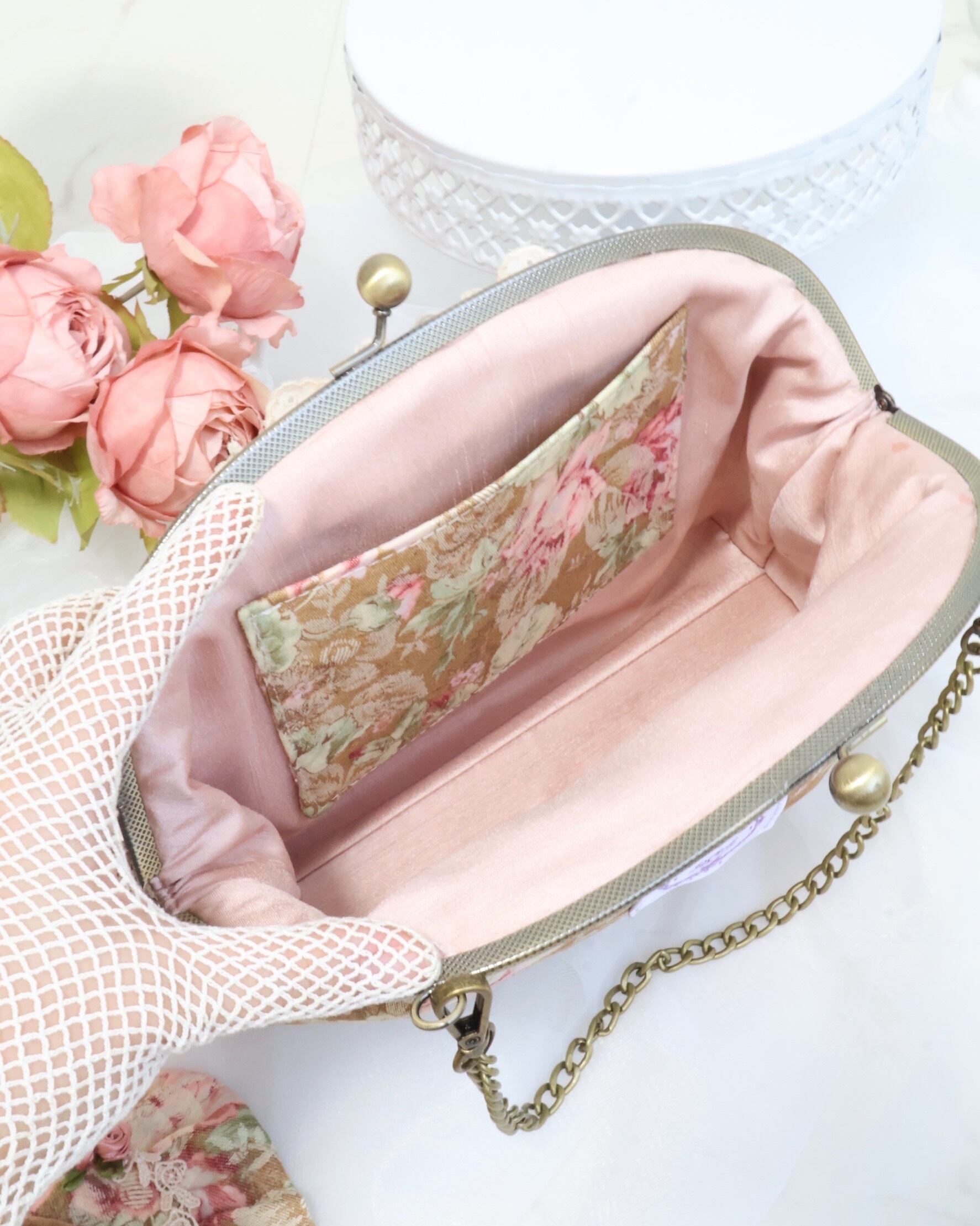 繊細なエンジェルレースが目を惹くがま口バッグ。