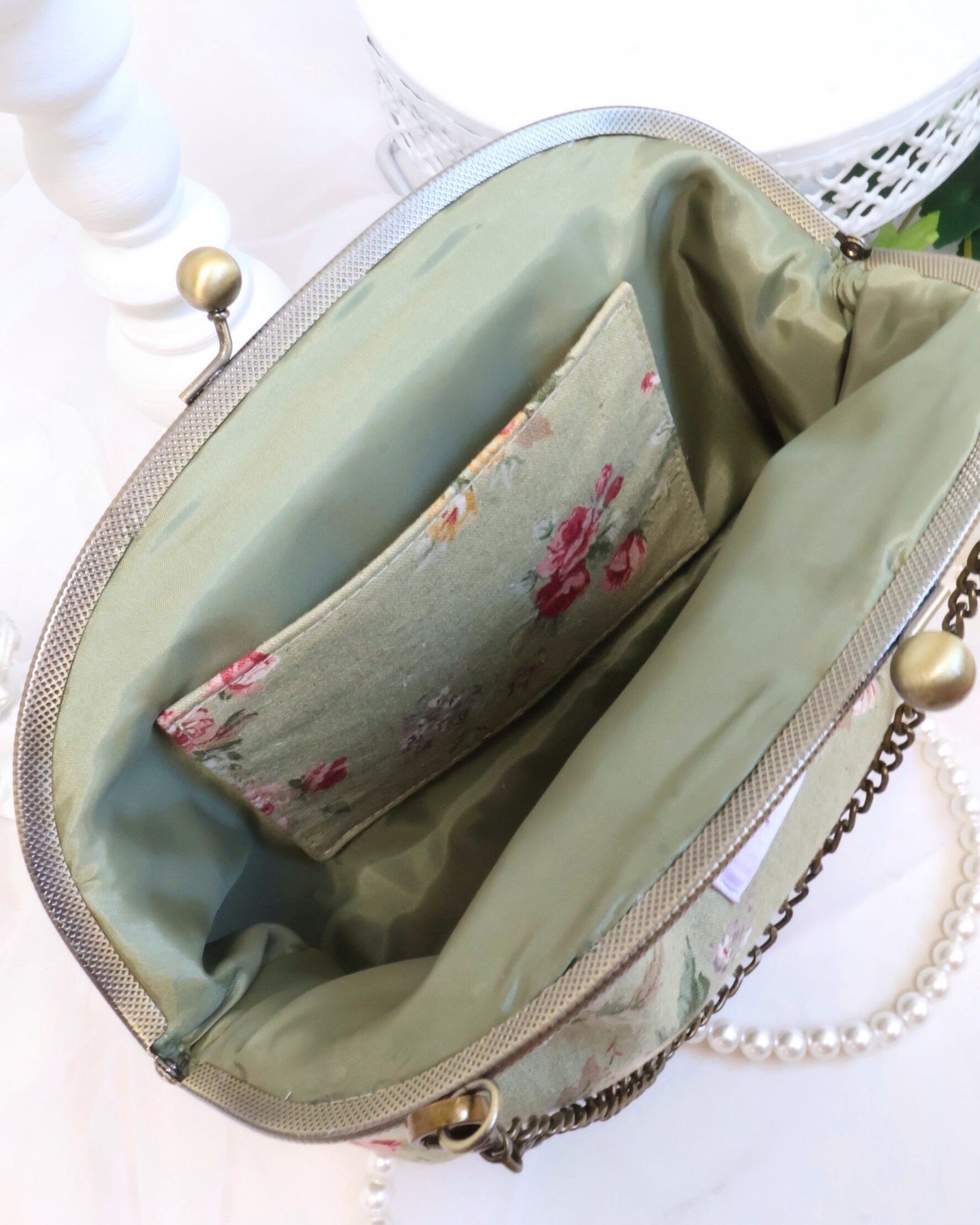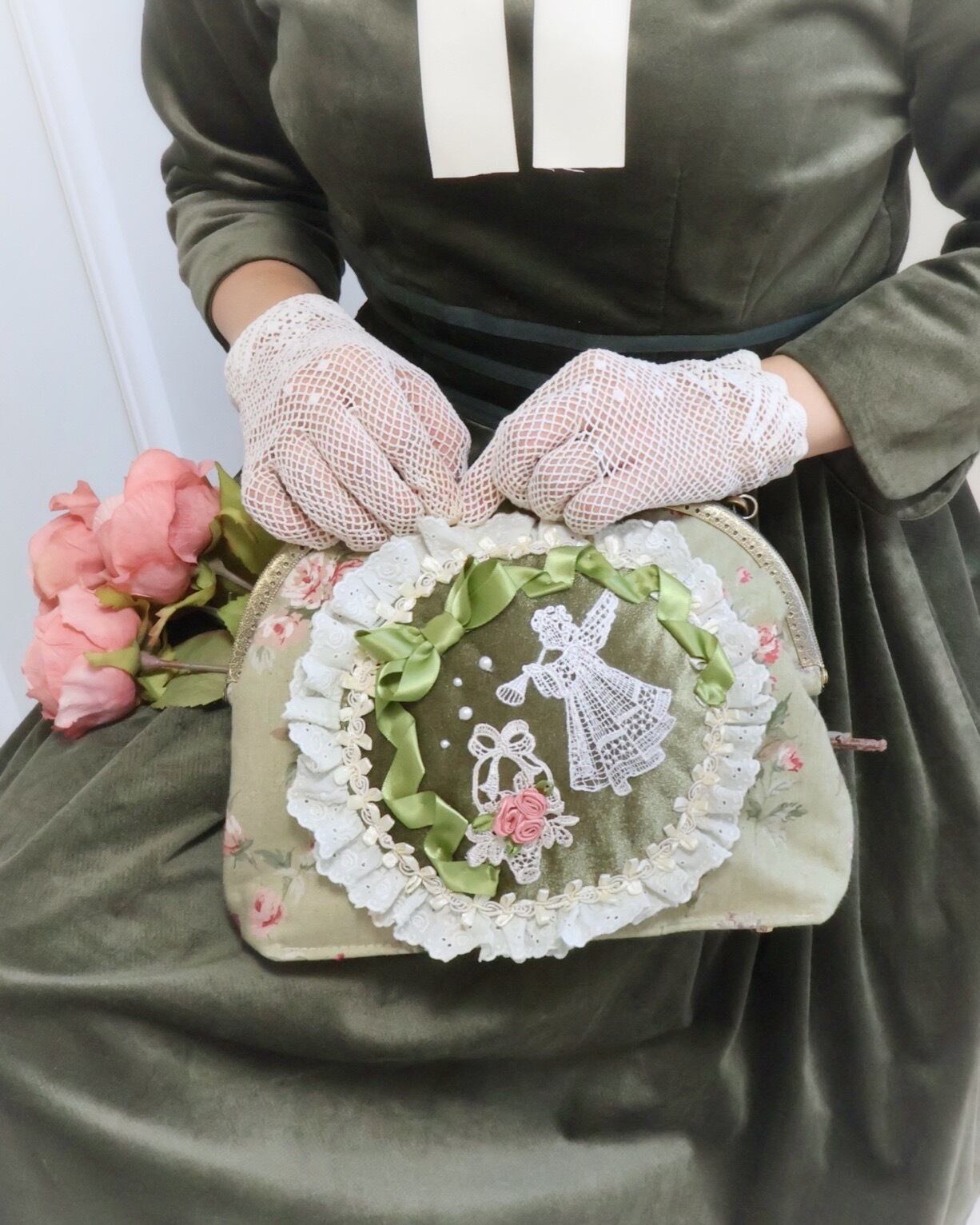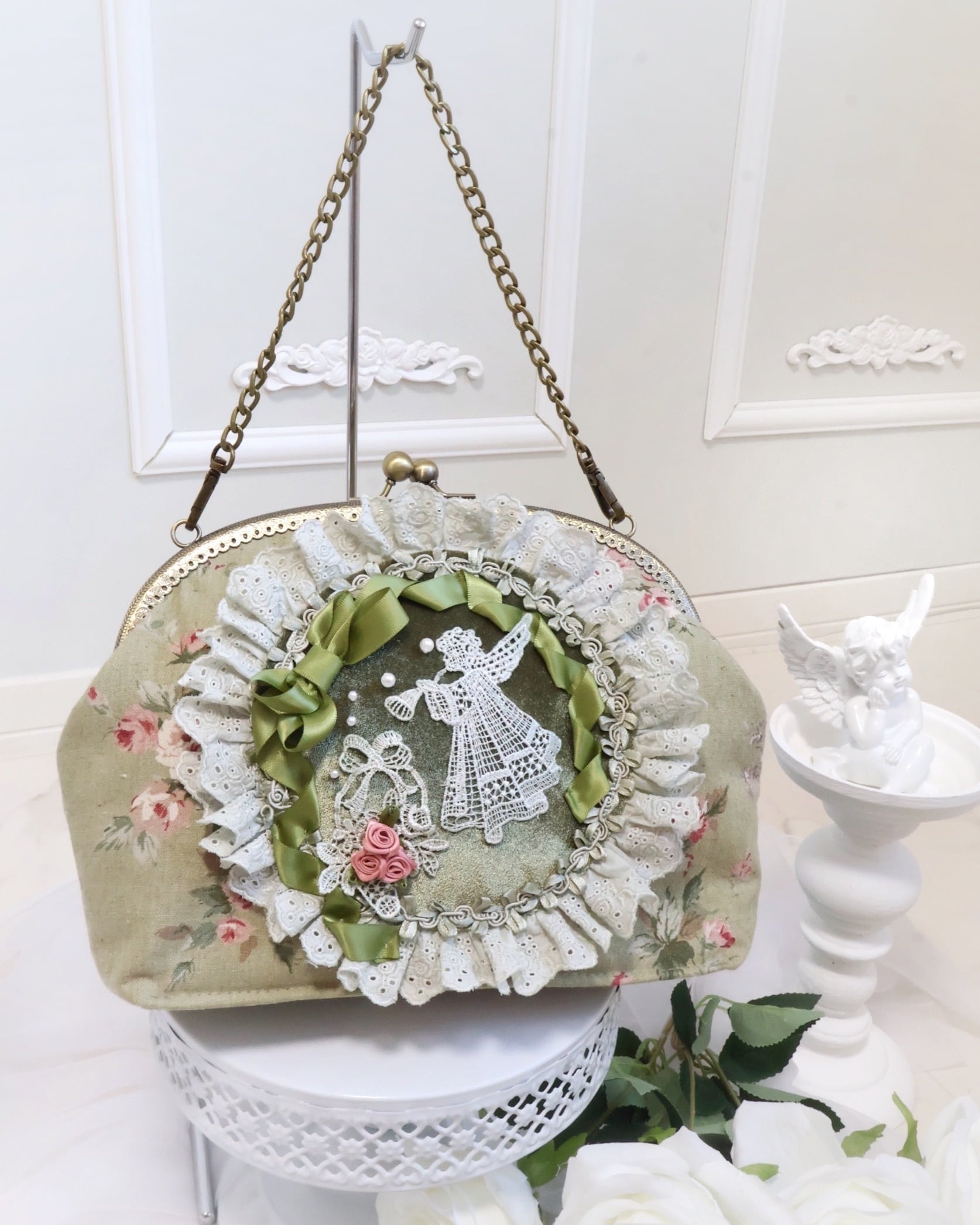 繊細なエンジェルレースが目を惹くがま口バッグ。