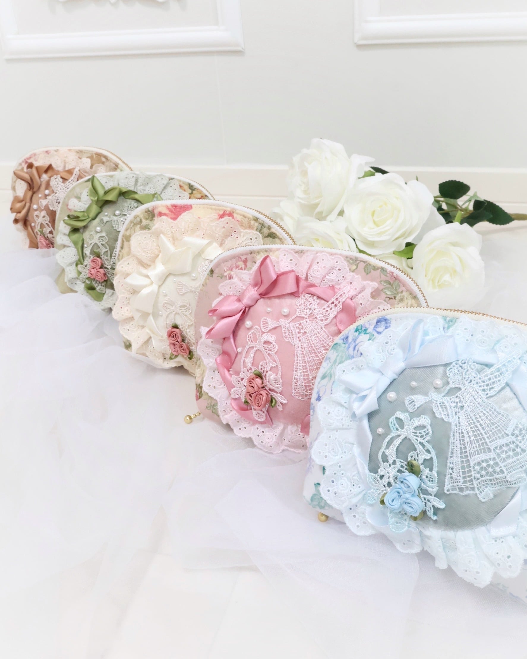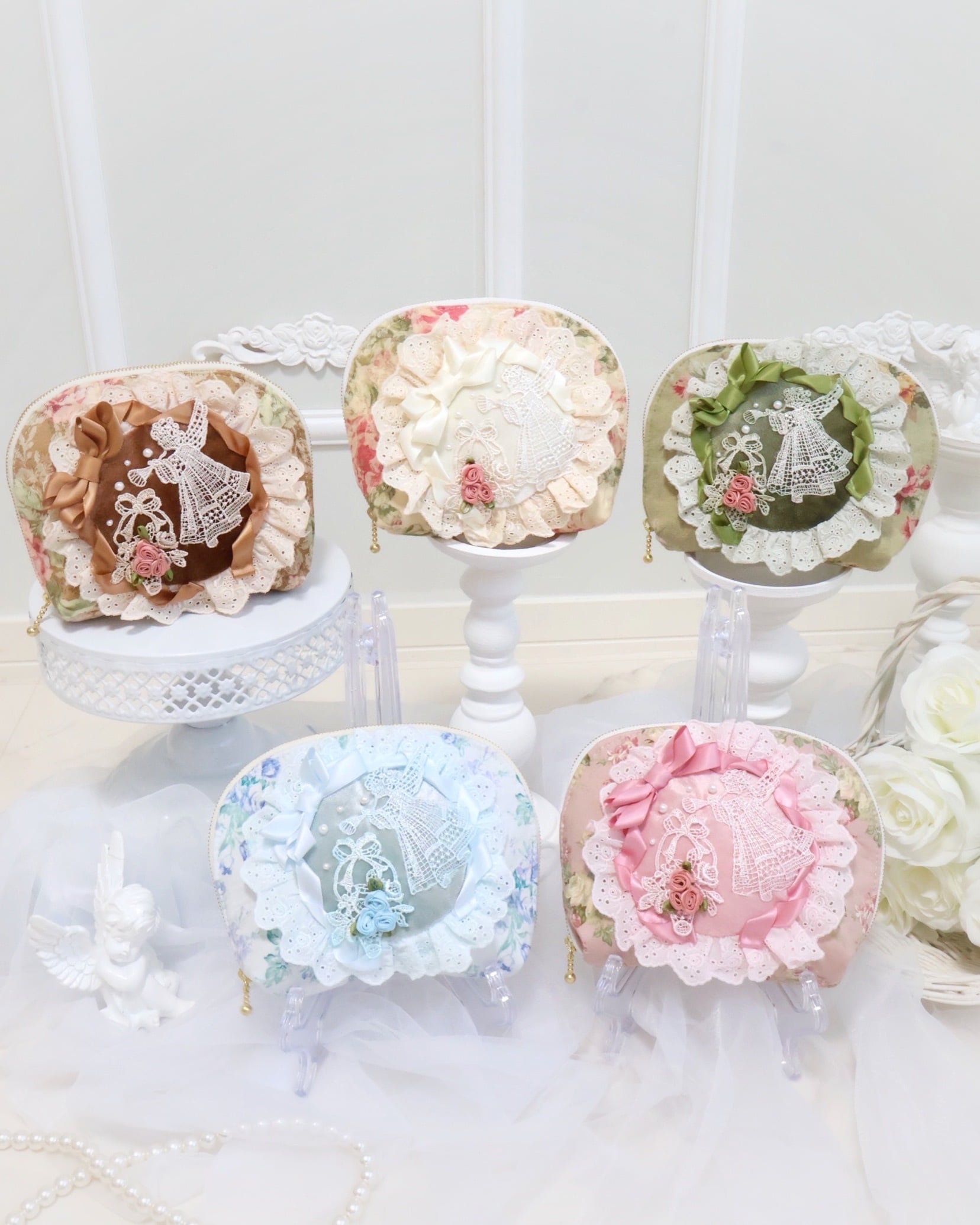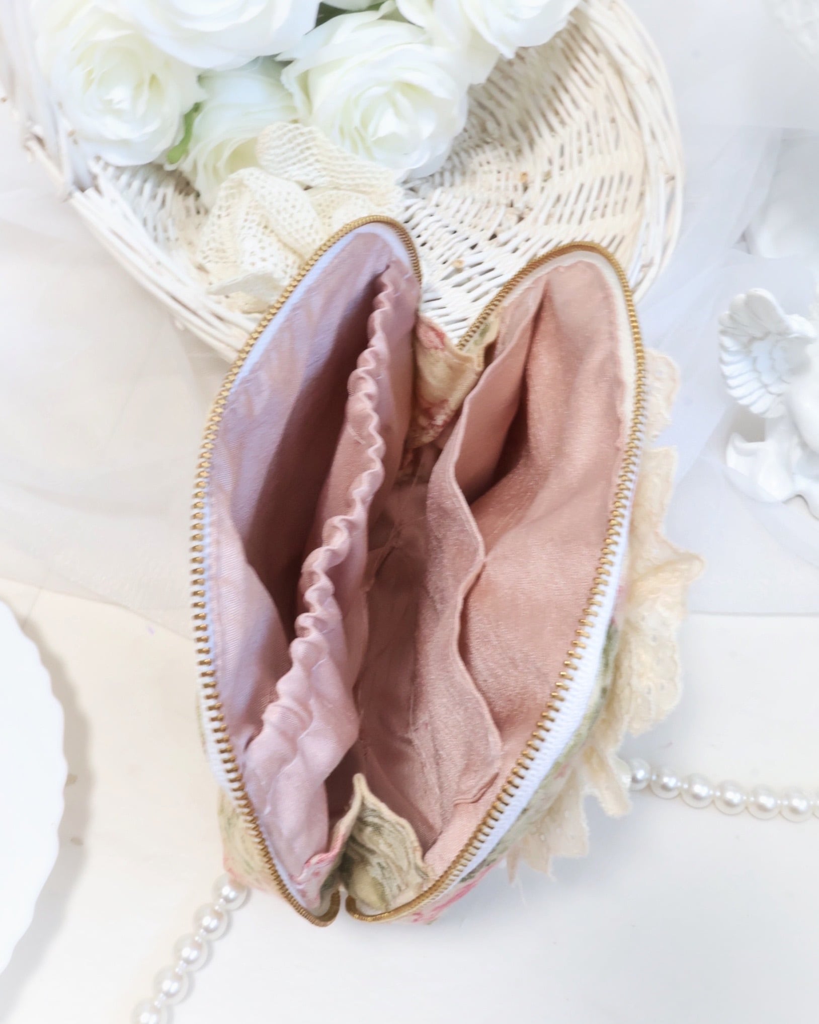 繊細なエンジェルレースが目を惹くファスナーポーチ。