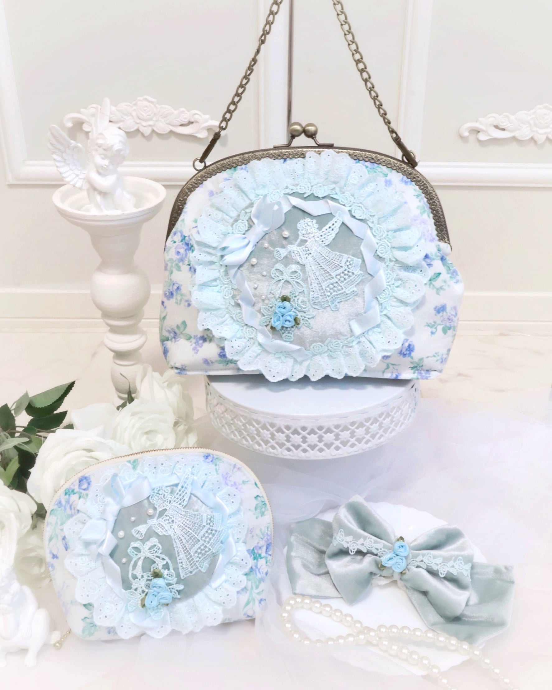 繊細なエンジェルレースが目を惹くファスナーポーチ。