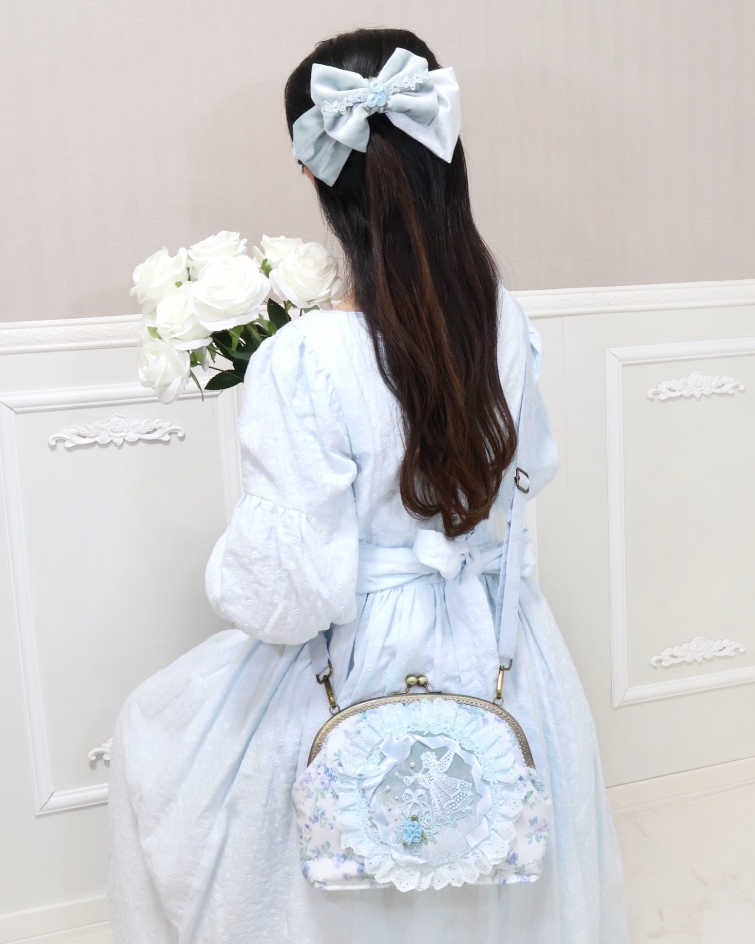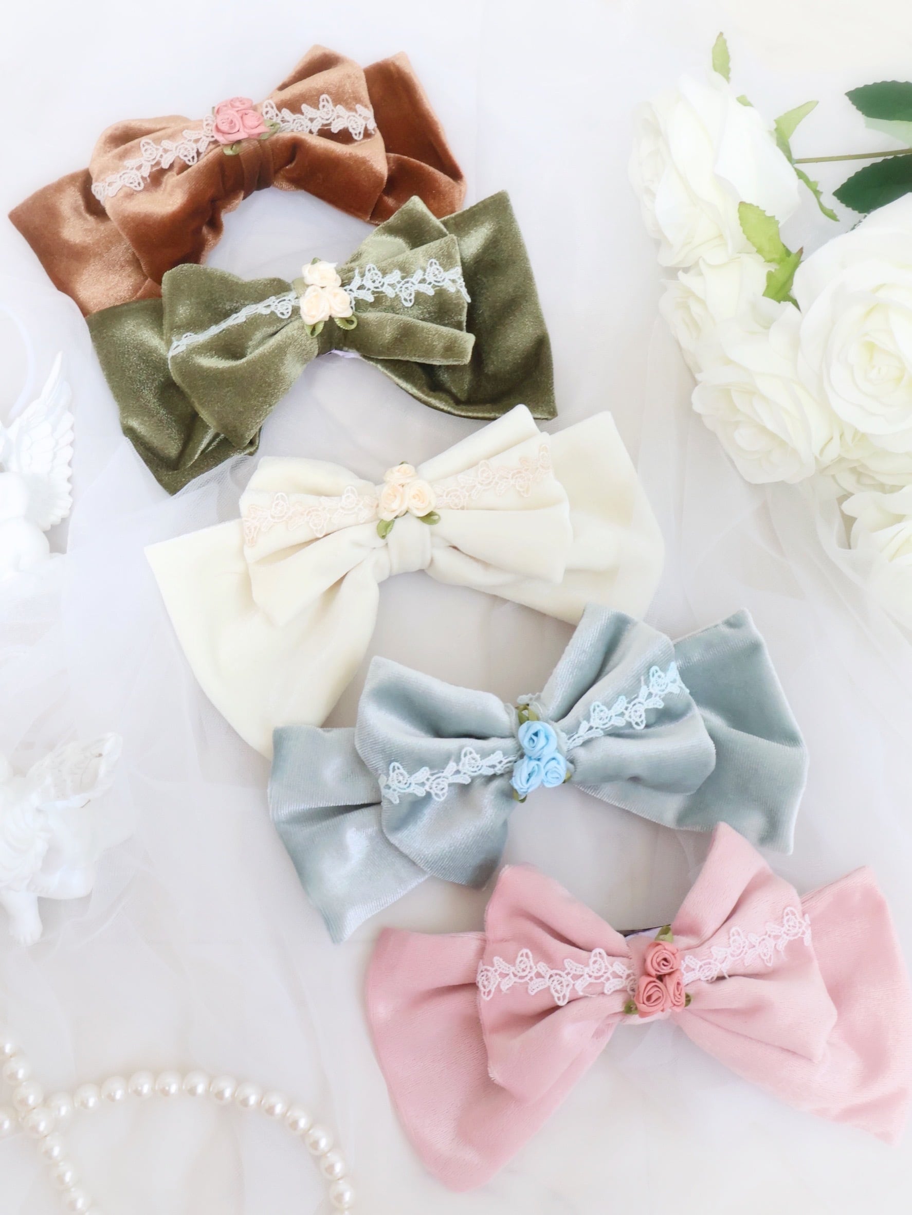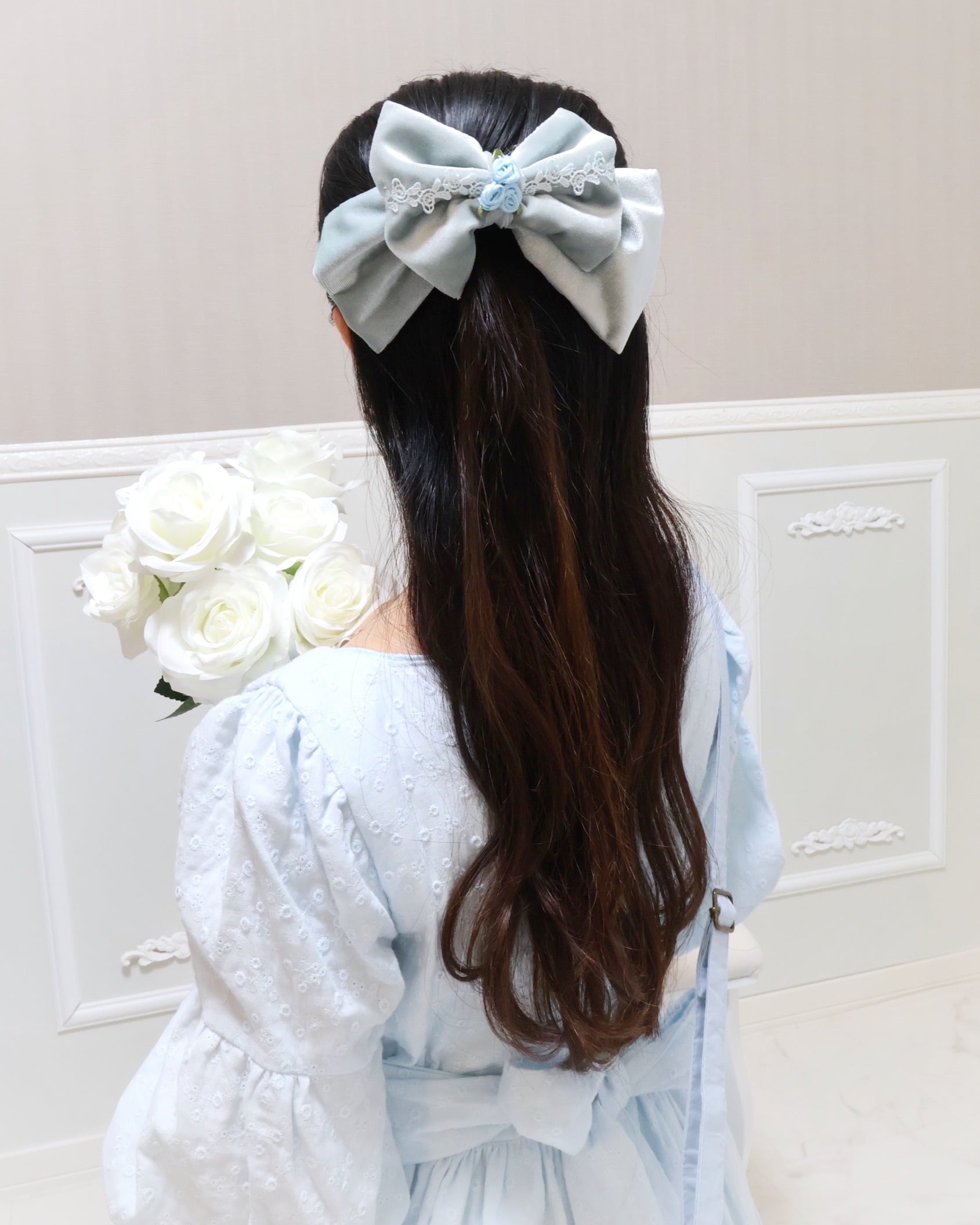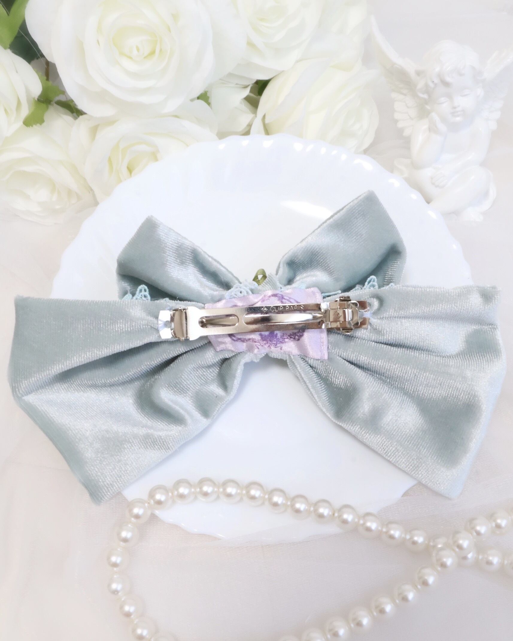 手染めレースリボンバレッタ(大)【サックス】