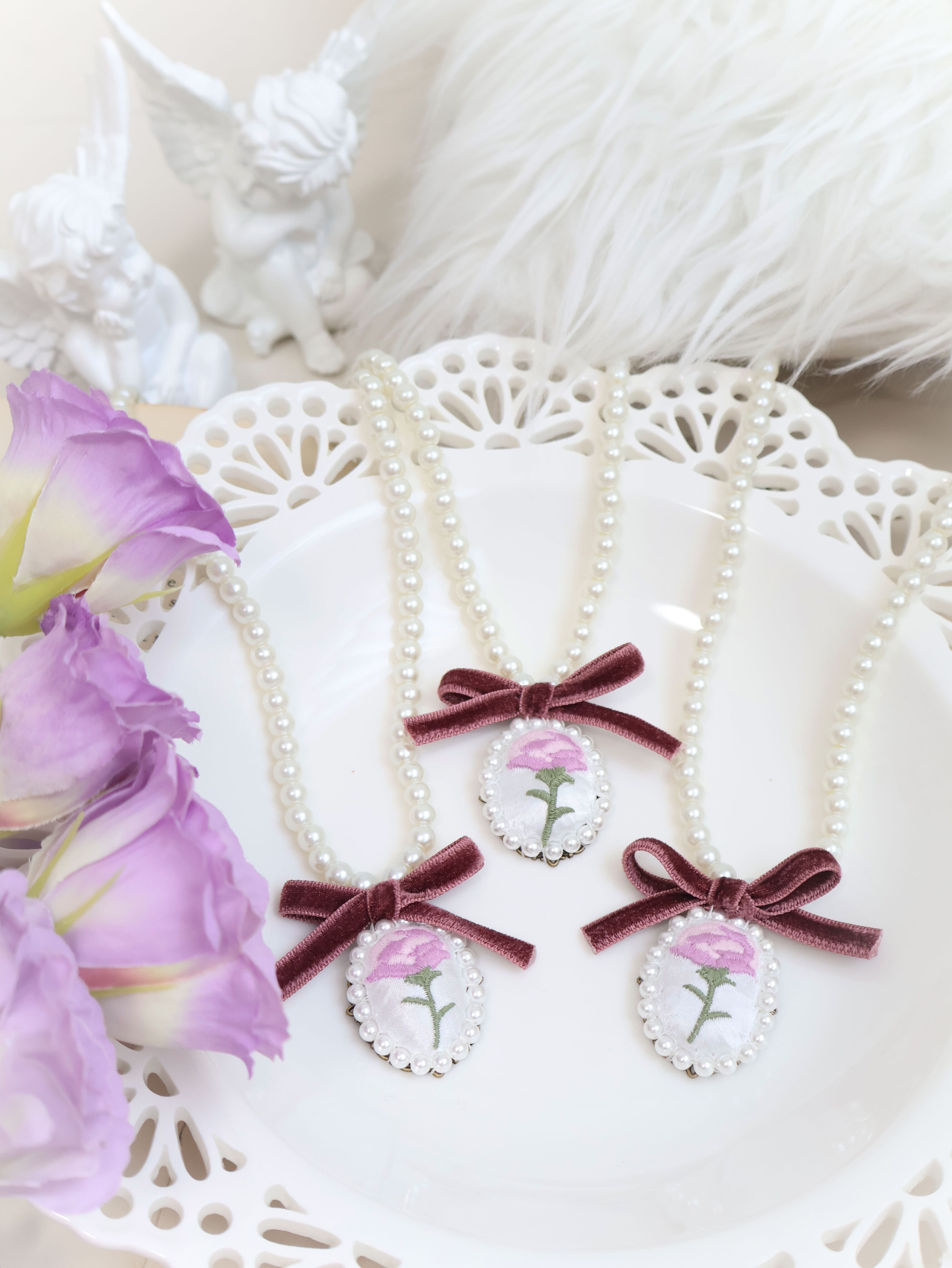 ブランドオリジナル藤色ローズ刺繡です。